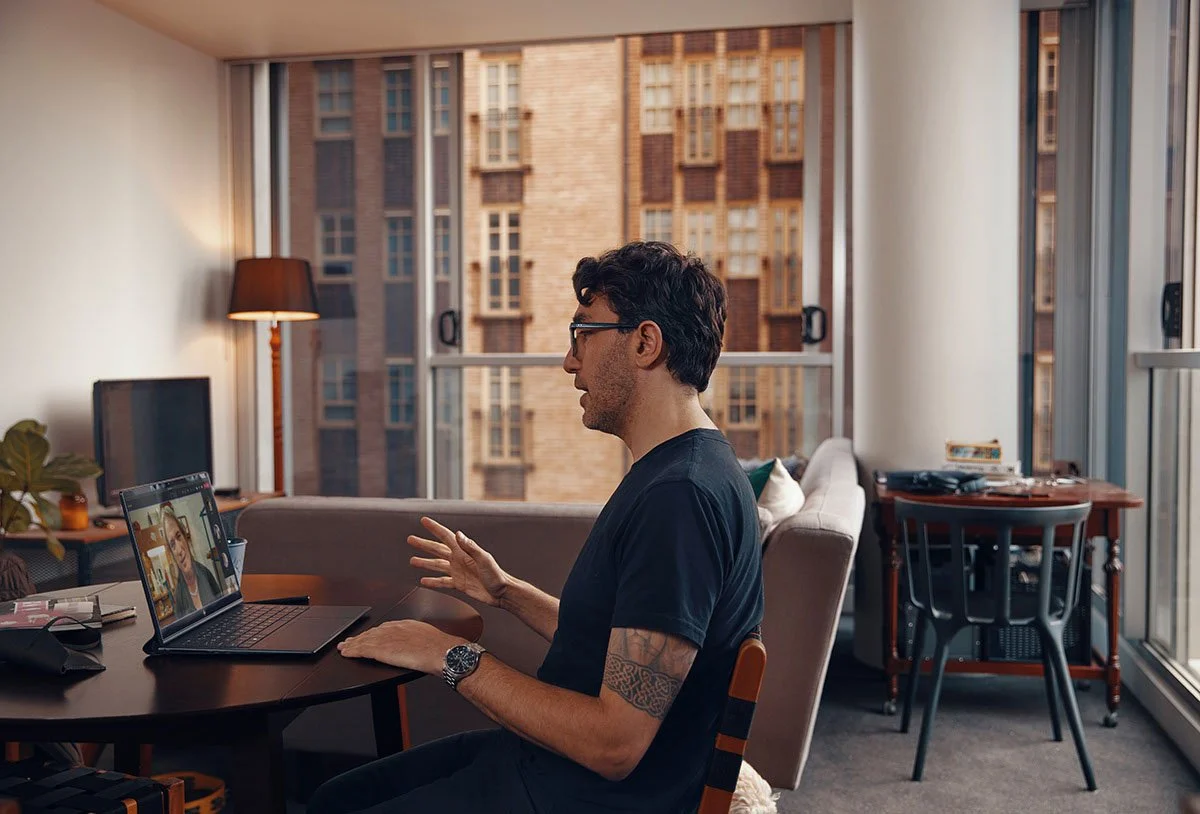 wrapped in a leather-like cover, the dragonfly folio g3 utilises the material’s flexible qualities for the live hinge mechanism. featuring a pull-forward hinge, the dragonfly folio g3 shifts effortlessly between laptop, pull-forward, and tablet modes. prop the screen forward for focused viewing, lay it flat for sketching and note-taking, or snap back to classic laptop form, each mode supports a different way of thinking, working, and creating.